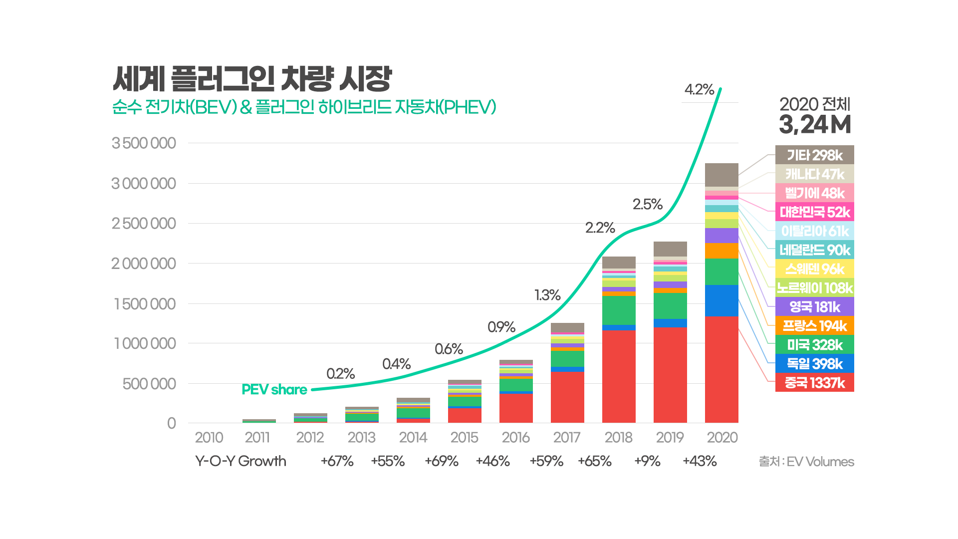 한편, 국내 완성차 기업인 현대차와 기아차도 전기차 라인업을 늘려 내연기관 탈피에 주력하고 있습니다. 기아차는 2026년까지 11종의 전기차 풀 라인업을 구축할 계획인데요. 2030년까지 글로벌 판매 405만대 중 친환경차 비중을 40%까지 끌어 올릴 것이라고 선포했습니다.